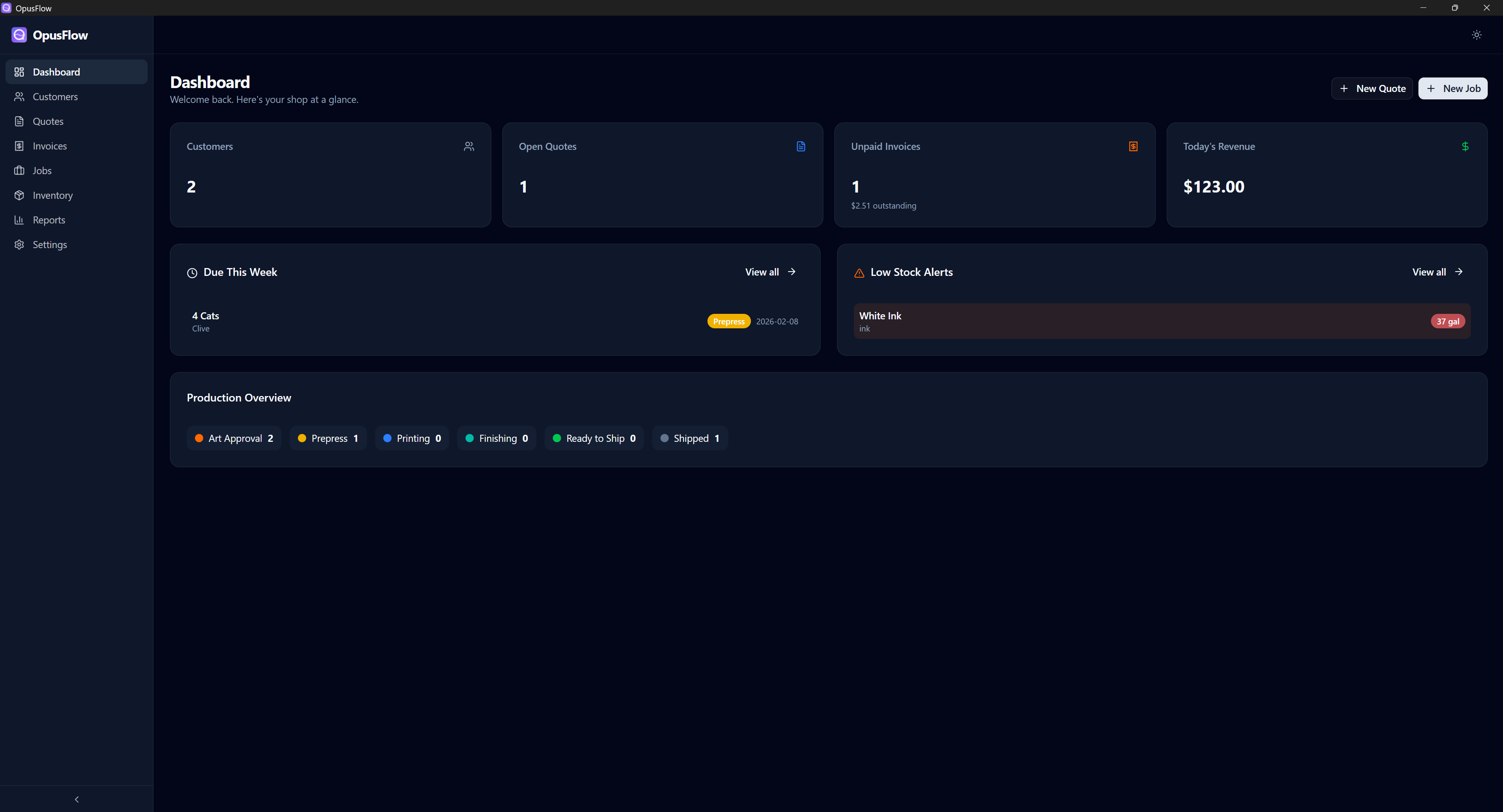 Tired of $100+/mo cloud fees, glitches, and production stopping when internet drops? OpusFlow is a fast, fully offline desktop app built for small-to-medium screen printing and custom apparel shops.